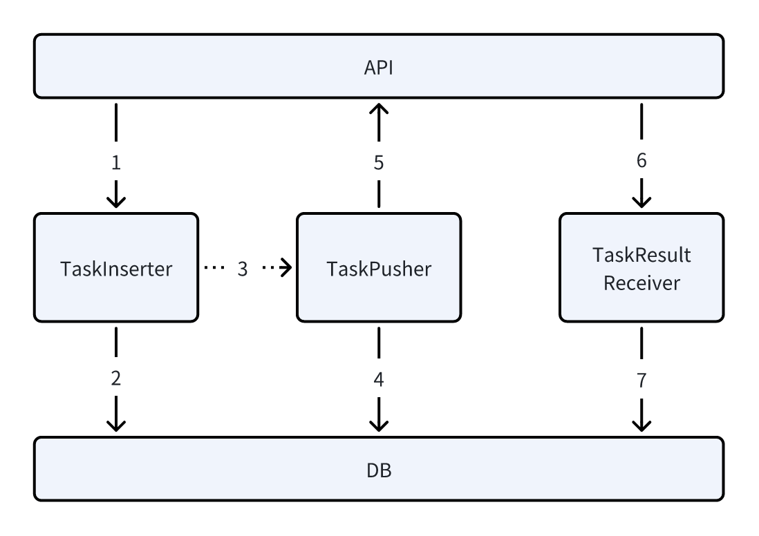 - 任务成功回调后:当 Task Result Receiver 接收到任务完成回调并更新状态后,也触发一次 Task Pusher。这表示有空闲的并发槽位被释放,可以立即尝试处理新的任务。